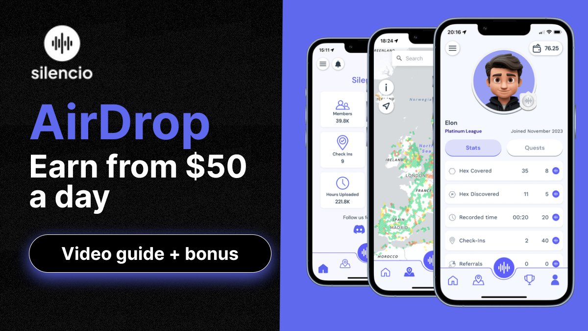 1️⃣ Go to silencio.network 2️⃣ Download the app 3️⃣ Use referral code cryptomiz 4️⃣ Start recording real-life ambient sounds 5️⃣ Earn Noise Coins for every approved contribution