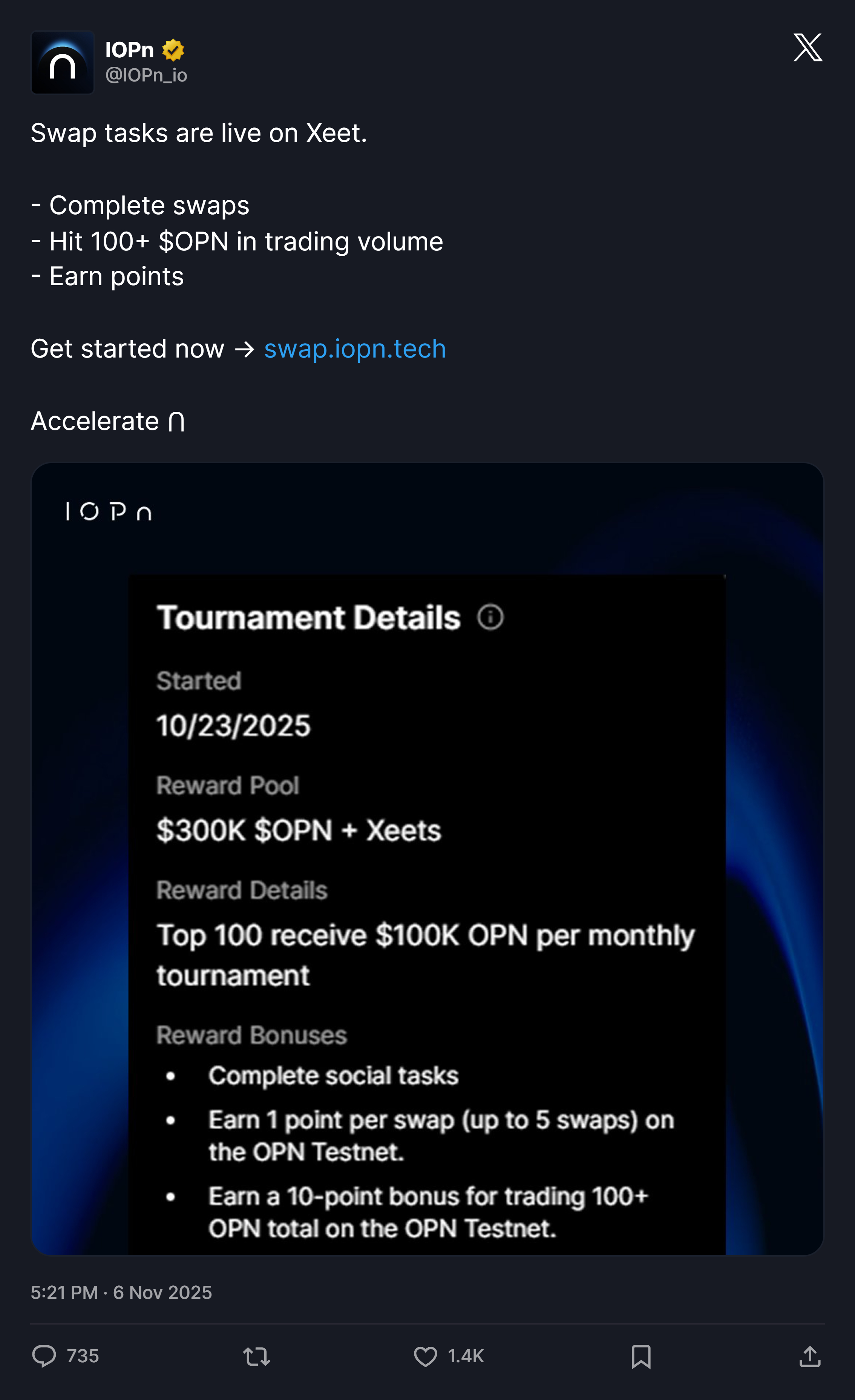 Swap fake tokens, earn real rewards — farm free points on IOPn’s testnet before the airdrop hits. 🚀