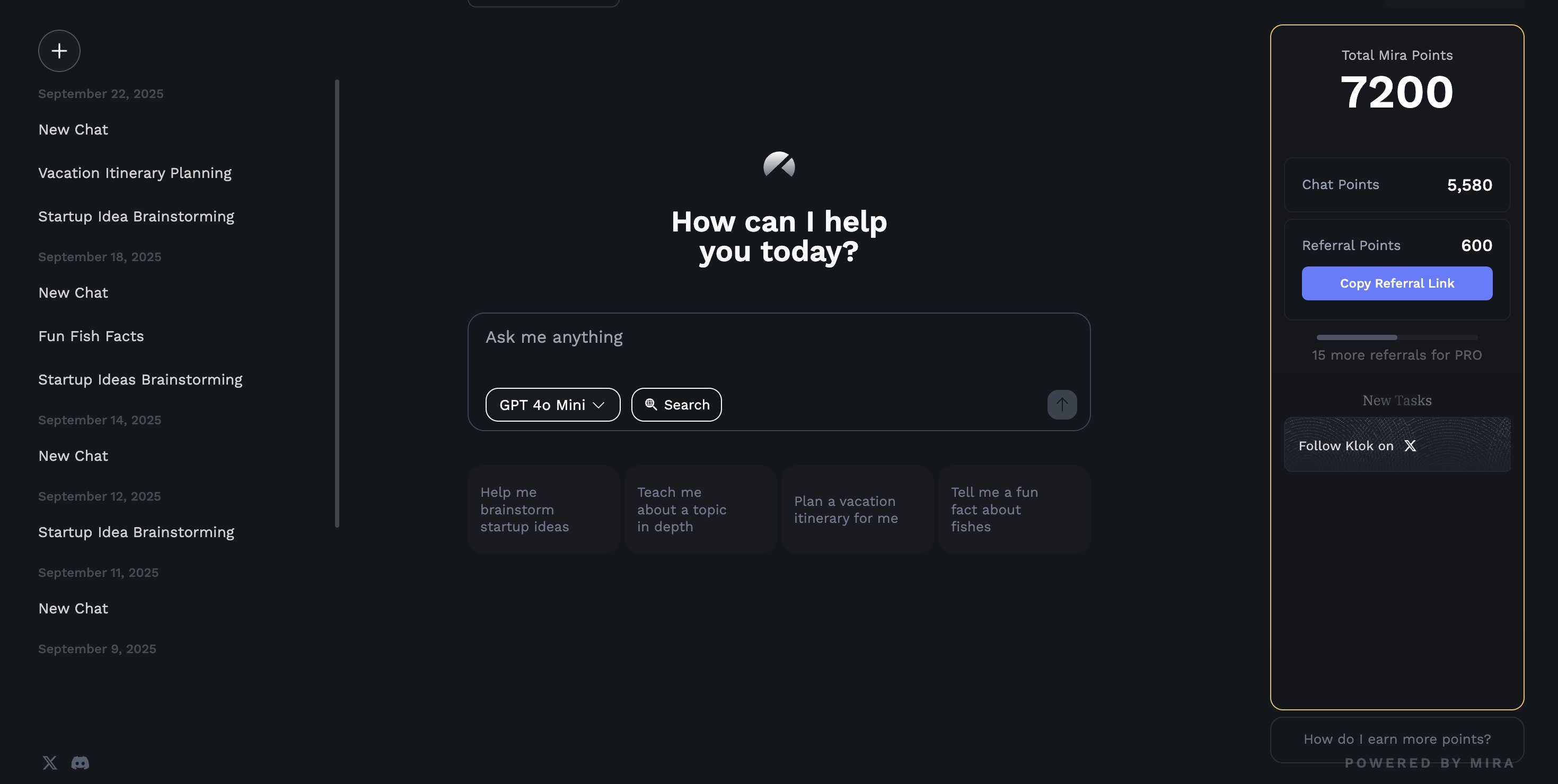 Farm Klok App points daily with Klok App and stay ready for future $MIRA airdrops from Mira Network.