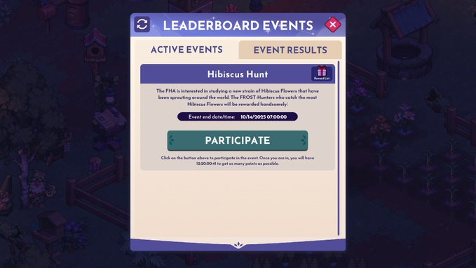Join Moonfrost’s Hibiscus Hunt from Oct 1–14, collect Hibiscus Flowers, climb the leaderboard, and unlock Legendary Workbenches, Charms, and more!