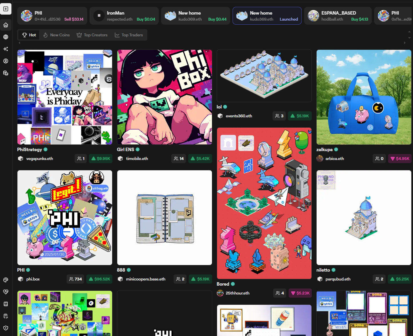Phi is a Web3 identity protocol on Base, letting you build your onchain persona by creating Boards, minting Arts, collecting Creds, and earning Badges. Think of it as tokenized digital identity — your reputation becomes capital.